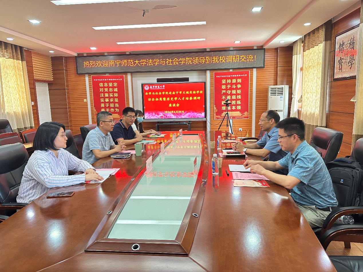 首先,南宁市天桃实验学校教育集团邹南勇校长对尹院长一行的到来表示热烈欢迎,随即介绍了全国名校南宁市天桃实验学校教育集团的办学理念与办学特色。随后,尹文嘉院长介绍了法学与社会学院历史学专业人才培养目标、就业状况及此次访企拓岗和调研的目的。