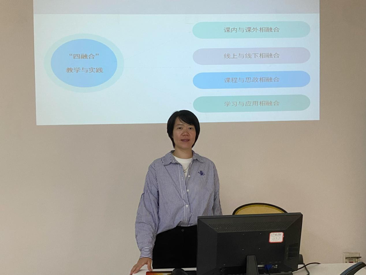 在交流讨论阶段,卫绪华副教授阐述了本学期《知识产权法》课程的教学改革方案,提出将课程打造成校企共建课程具体措施和方法。张丽君博士分享了参与教学改革实践的心得,并就课程思政深度融入专业课堂的途径进行了介绍。