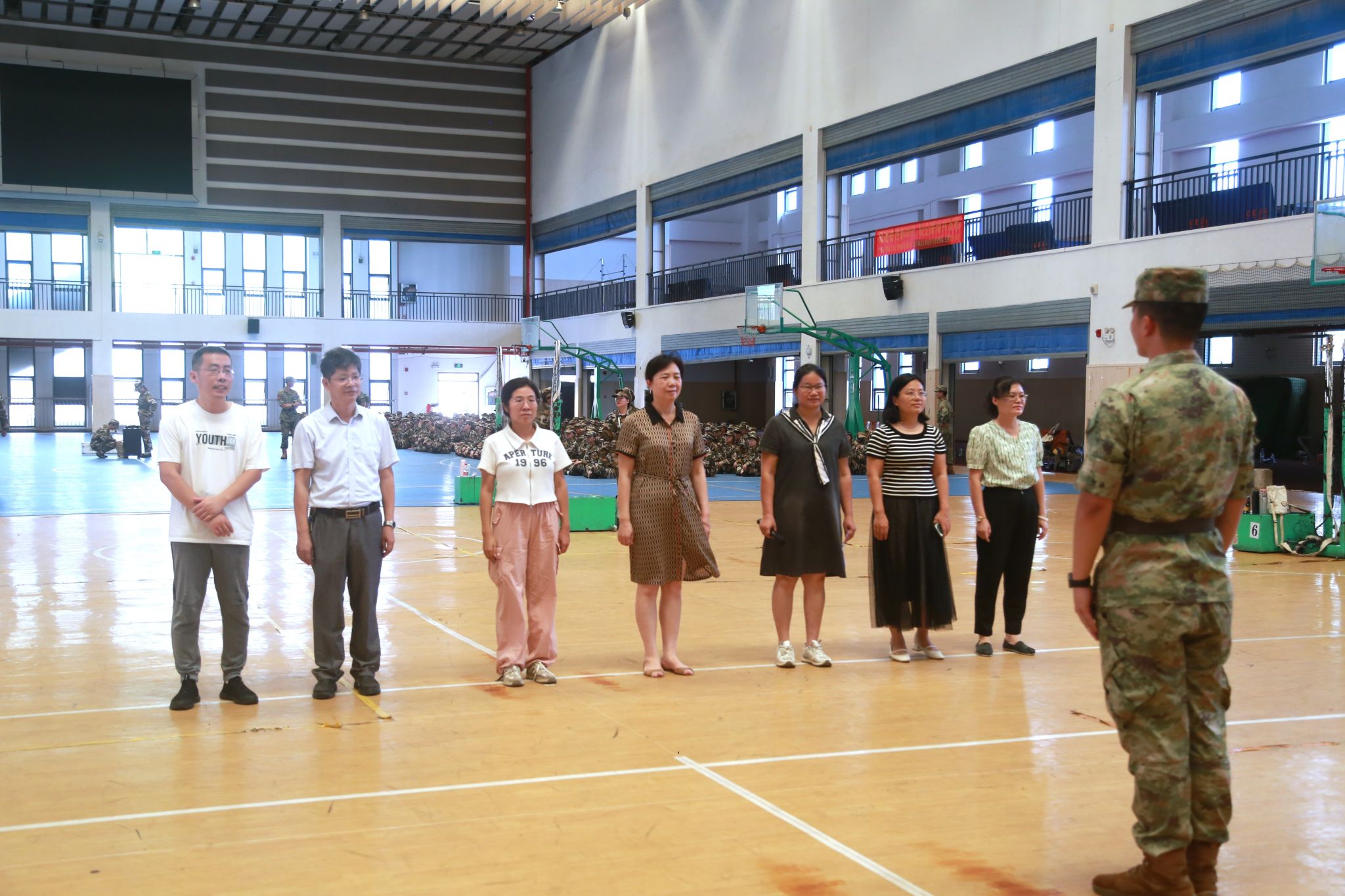 2024年7月14日上午,骄阳似火,在这个充满活力的上午,学院党委书记许建、副书记张建梅和班主任代表陈文琼、秦晓辉、黄义英、盛海生、岳树燕等一行,来到五合校区体育馆,深入军训一线,为正在接受锤炼的学子们以及承训教官送去了亲切的关怀与慰问。