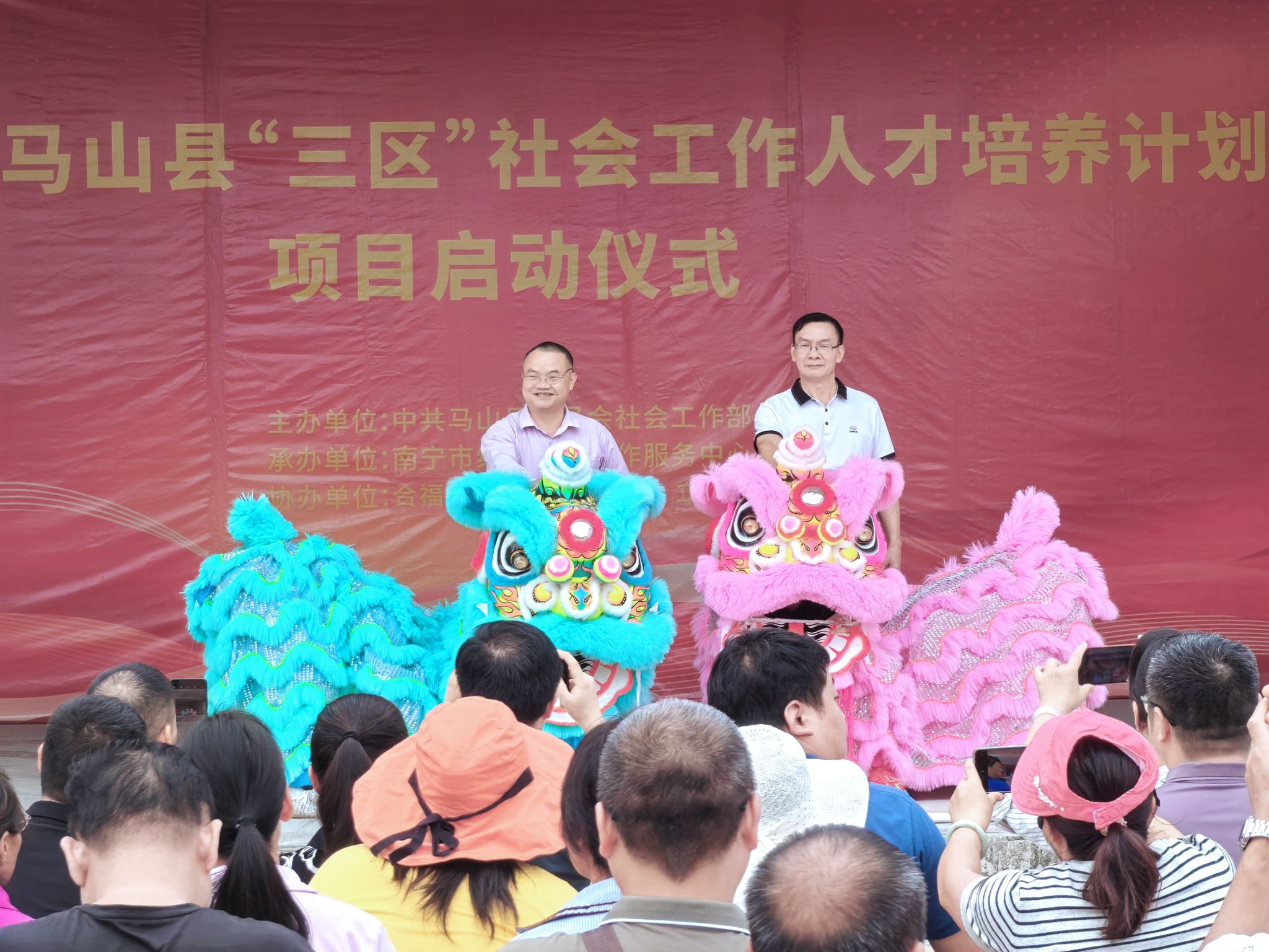 龙狮团受邀参加了在马山县举办的“三区”社会工作人才培养计划项目启动仪式。该项目由中央社会工作部办公厅发起,旨在支持革命老区、民族地区和边疆地区社会工作专业人才的培养,推动包括马山县在内的五个国家乡村振兴重点帮扶县的社会工作人才队伍建设,助力基层治理与乡村振兴。