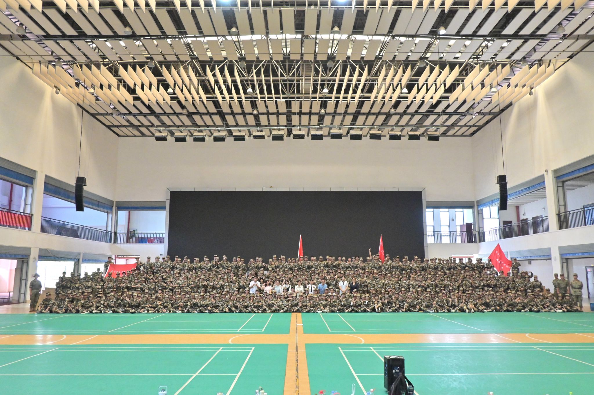 在五合校区体育馆内举行了2024级新生军训慰问活动。学院党委书记许建、副书记张建梅,以及2024级各班班主任和全体辅导员参加了本次活动。