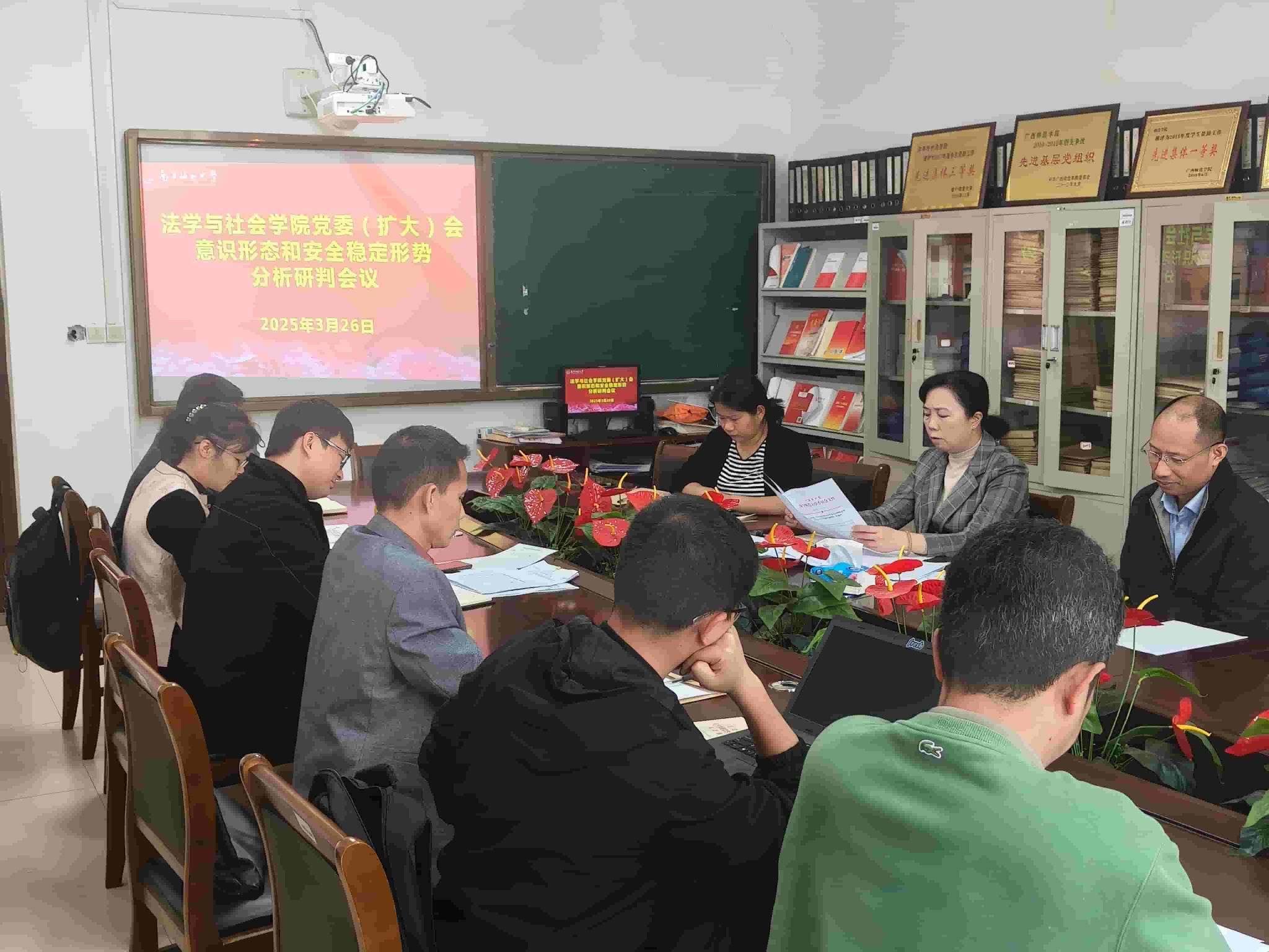 召开2025年春季学期意识形态工作布置会暨第一季度分析研判会。会议由学院党委书记许建主持,学院党委委员、教工党支部书记参会。