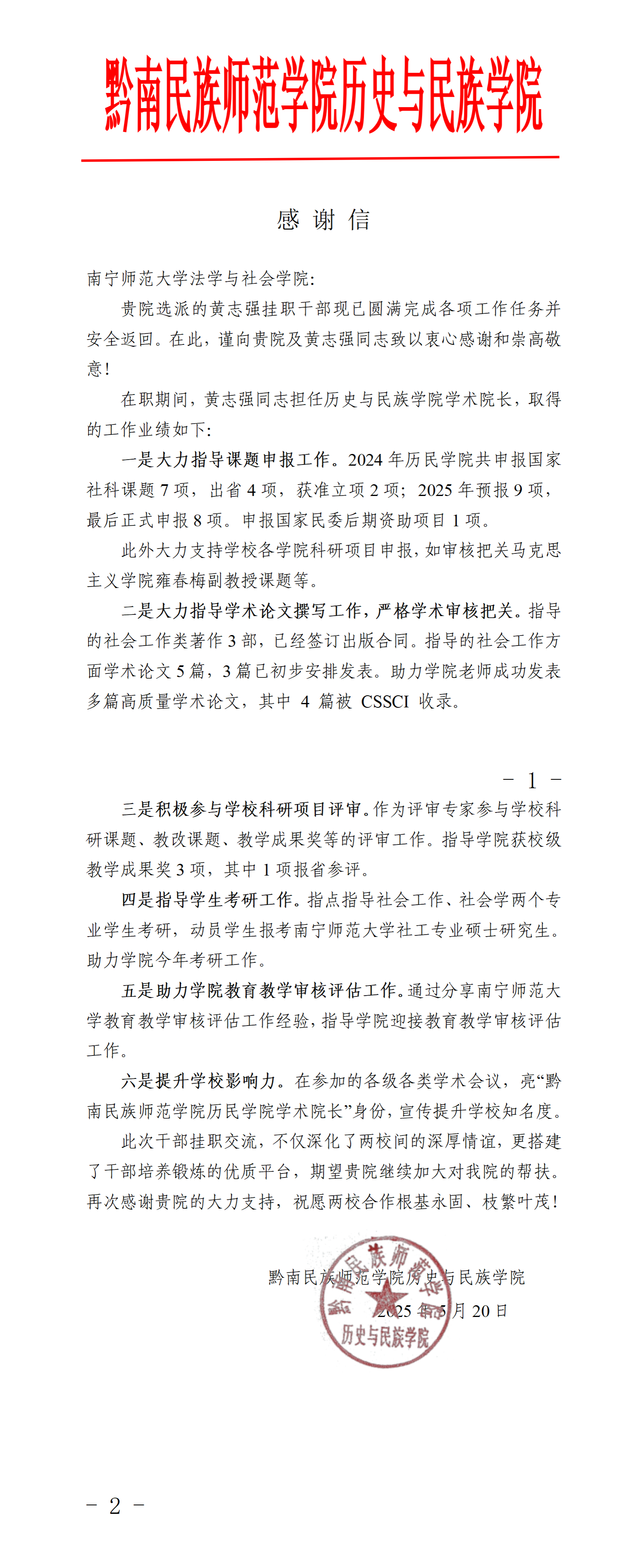 黔南民族师范学院历史与民族学院在感谢信中强调,黄志强教授的挂职“深化了两校情谊,搭建了优质合作平台”,并期待未来进一步深化帮扶。主播福利