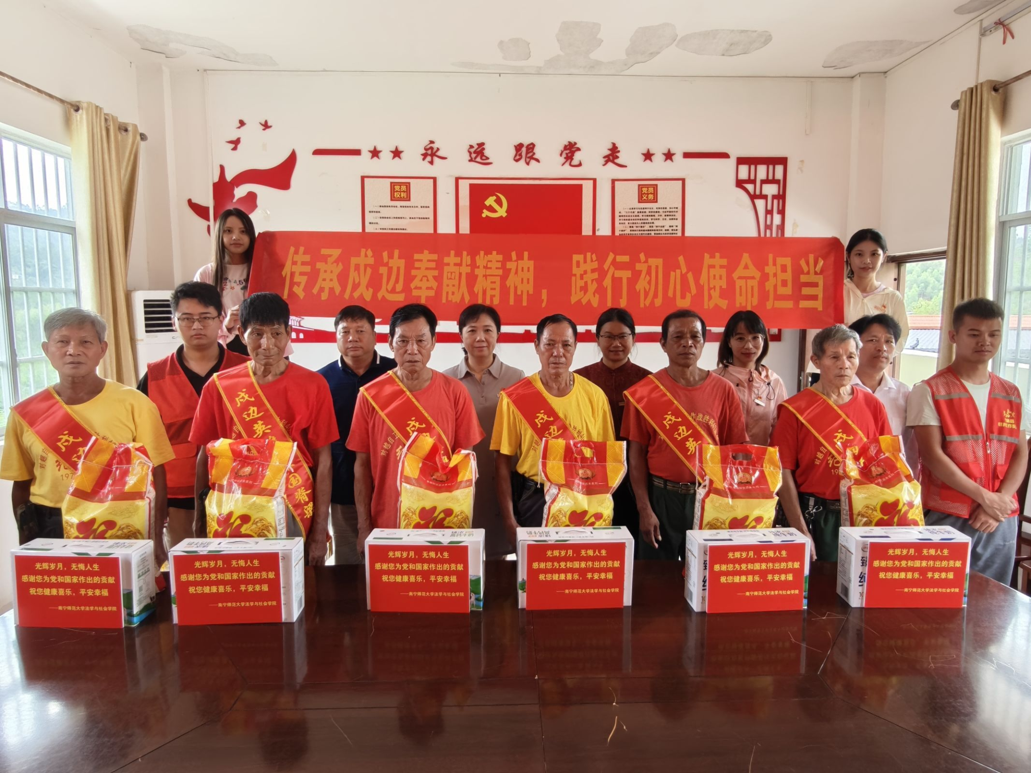 为传承红色基因,弘扬爱国主义精神,7月20日,我院党委书记许建、副书记张建梅及师生党员代表一行赴宁明县桐棉镇那么村党群服务中心,与那么村党支部联合开展“致敬戍边英雄 践行初心使命”主题党日活动,慰问曾参加边境自卫反击战的民兵英雄,聆听他们的戍边故事,表达崇高敬意。