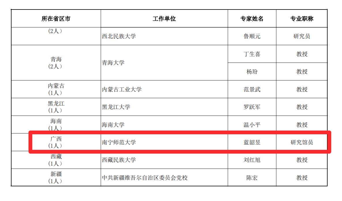 据悉,为确保国家社科基金成果鉴定的客观与公正,全国哲学社会科学工作办公室对国家社科基金项目的结项工作实行双向匿名通讯评议鉴定制度,要求通讯评议专家严格履行鉴定职责。对于评议态度严谨、鉴定意见公正、工作表现优秀的专家,则被记入全国哲学社会科学工作办公室的“成果鉴定工作认真负责的专家档案”,并按月在官网通报表彰。此次共评选出全国190位专家,广西仅蓝韶昱教授一人入选。