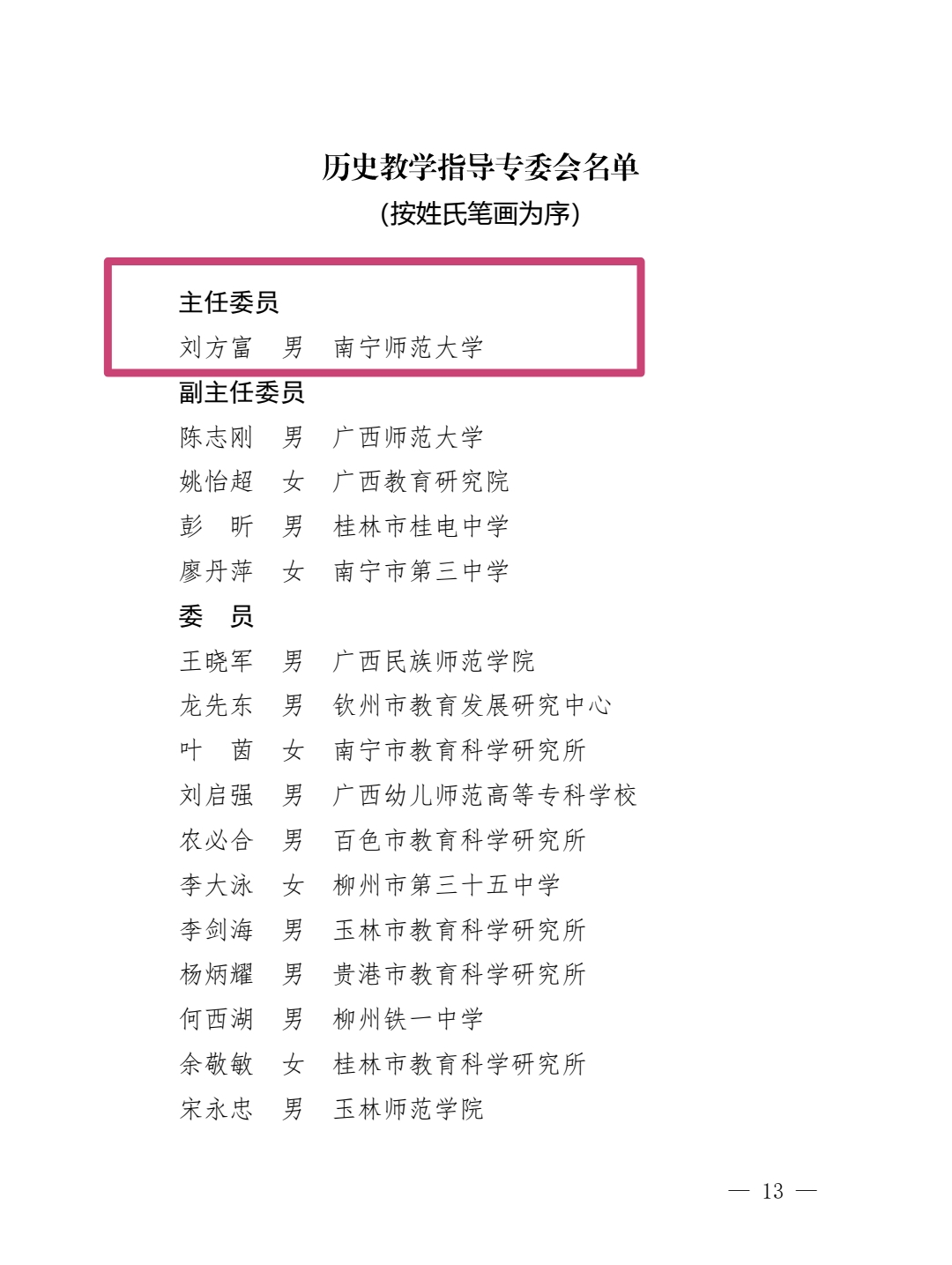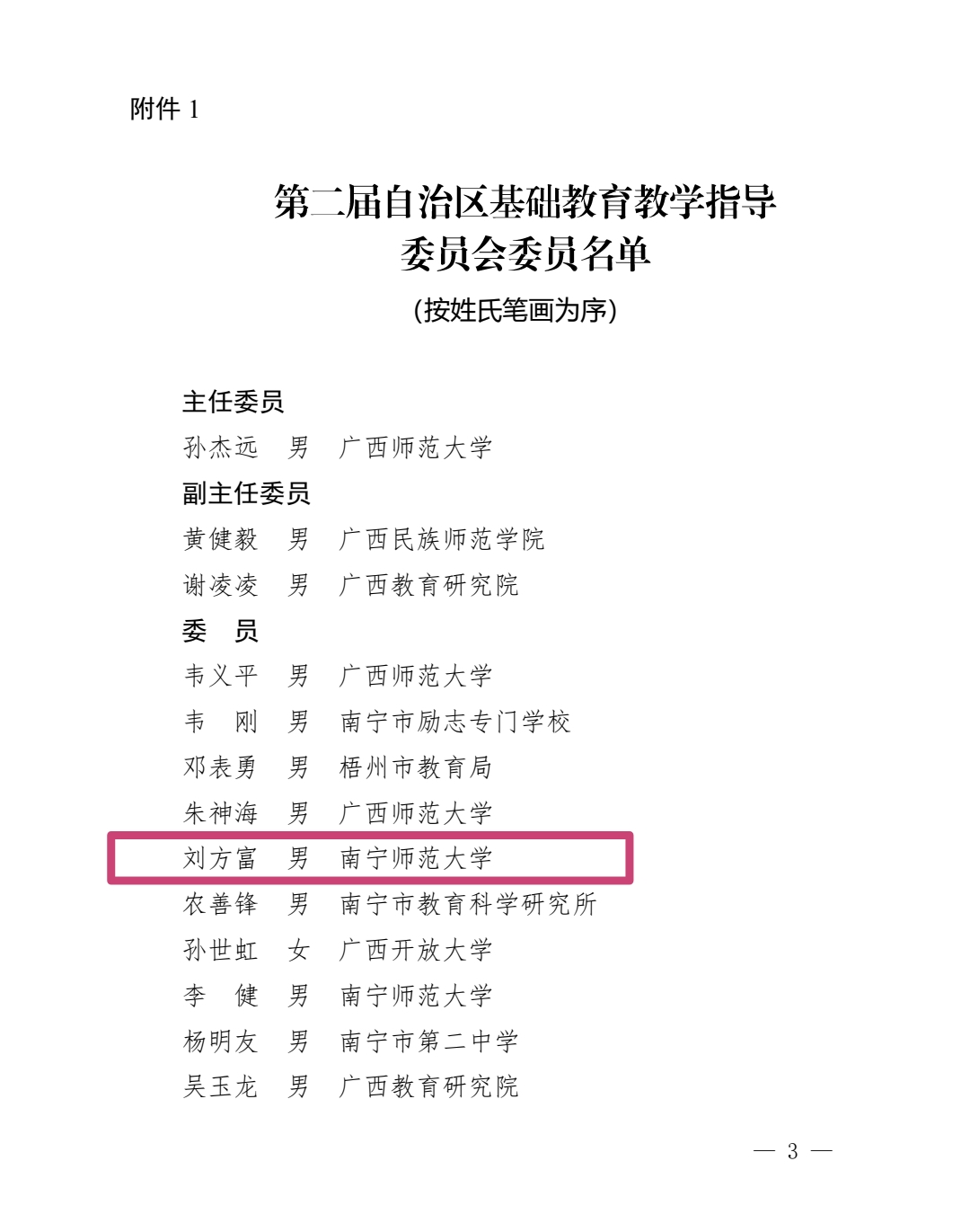 3位教师成功入选。其中,刘方富老师获聘第二届自治区基础教育教学指导委员会委员,同时担任历史教学指导专委会主任委员;覃淮宇、黎曦两位老师获聘为专门教育指导专委会委员。聘期为2025年9月至2029年8月。