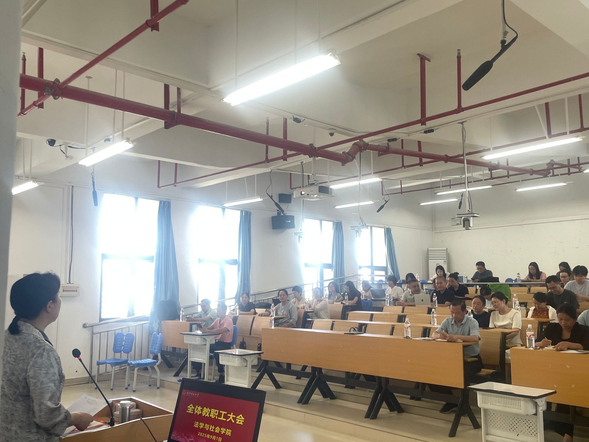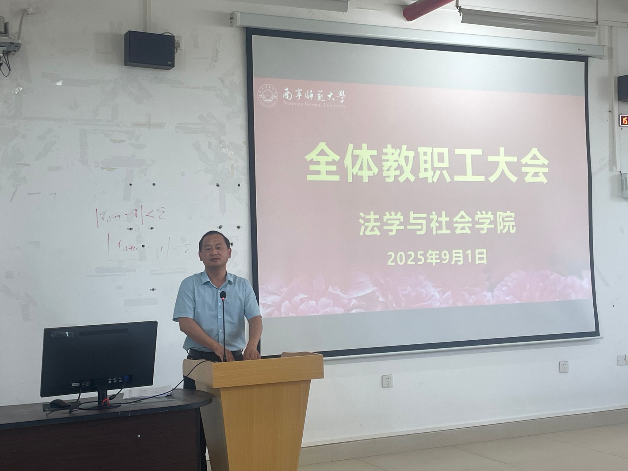 最后,主持行政工作的副院长吴少进传达了学校2025年秋季学期工作布置会精神,并结合学院发展实际明确了工作重点。他强调,学院要紧密围绕学校中心工作要求,加快推进法学一级学科的评估工作;要提前谋划、系统规划“十五五”期间学院建设,从学科课程体系优化、研究生培养质量提升、加强科研队伍建设等多方面入手,不断增强学院科研能力和教学核心竞争力,持续推动学院的整体发展。