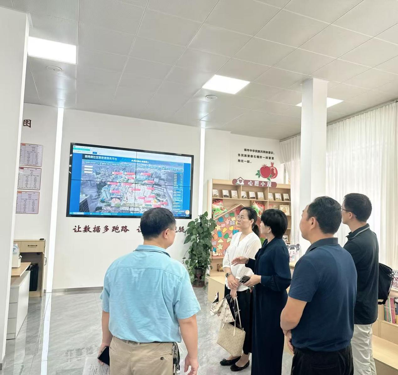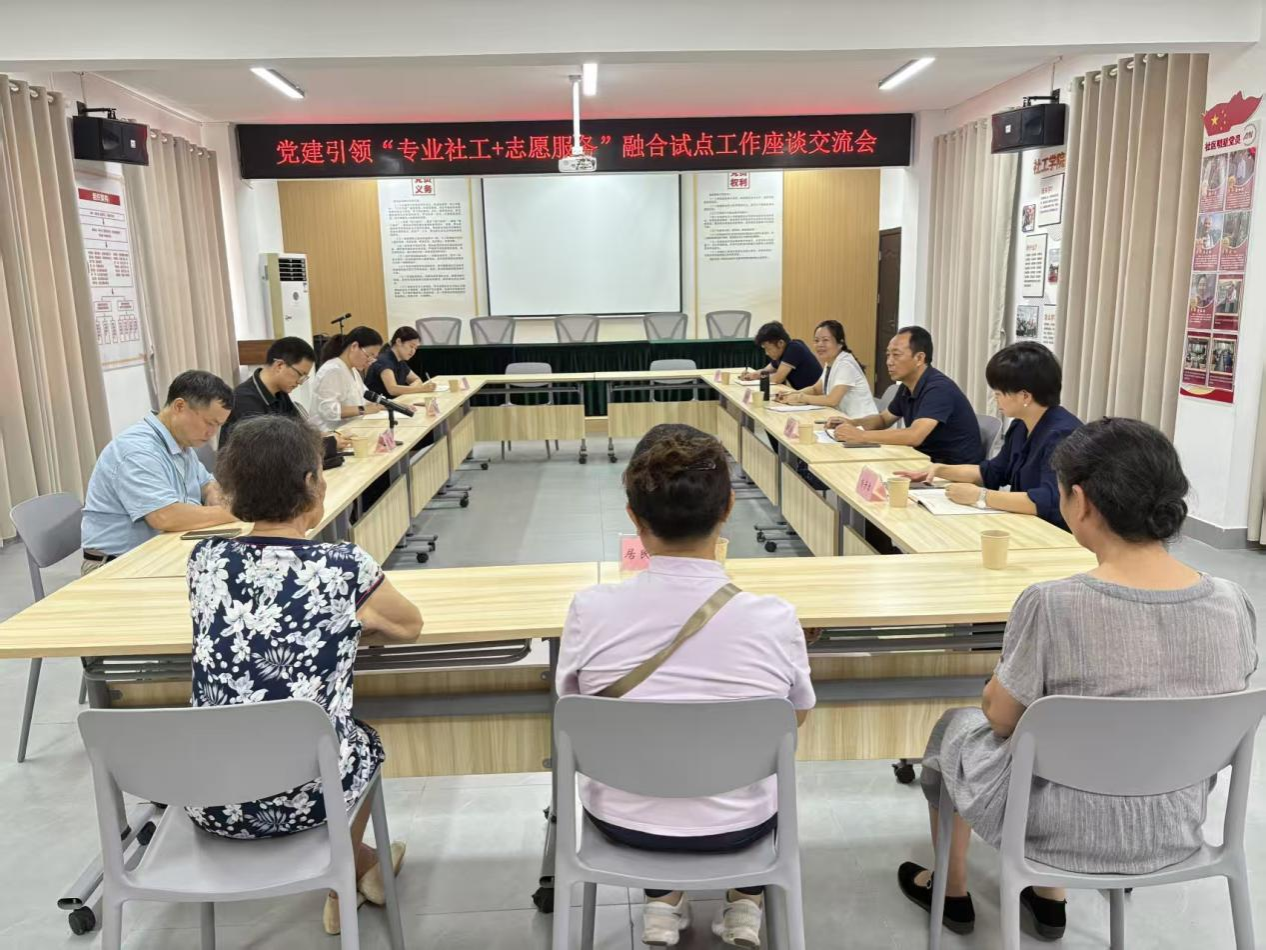 调研期间,在明秀南社区党委书记杨芳洁的讲解和引导下,与会人员实地考察社区一至三楼便民服务点,详细了解网格化治理架构、服务流程及“微治理”模式运行情况。在随后举行的座谈会上,各方围绕党建引领下“专业社工+志愿服务”融合试点工作的推进路径、专业社工在志愿服务中的引领作用、激发居民参与“微治理”的有效机制等议题进行了深入交流。与会一致表示,将加强协同配合,凝聚工作合力,确保试点项目顺利推进、取得实效。