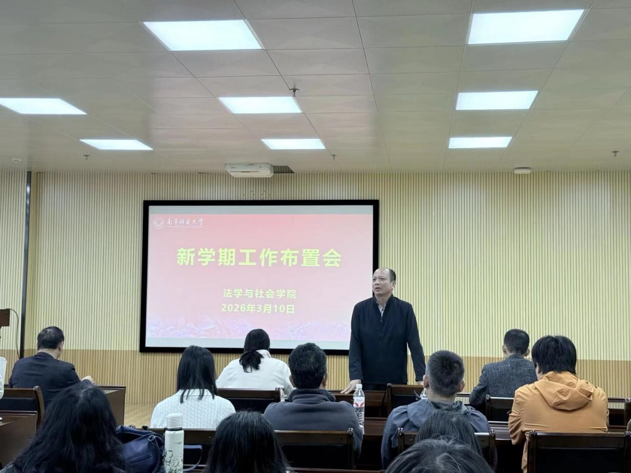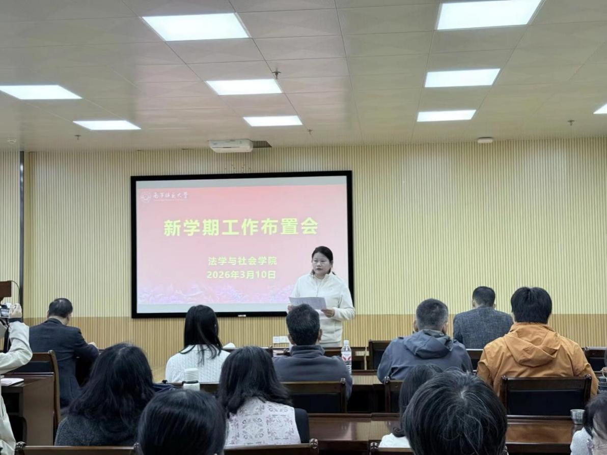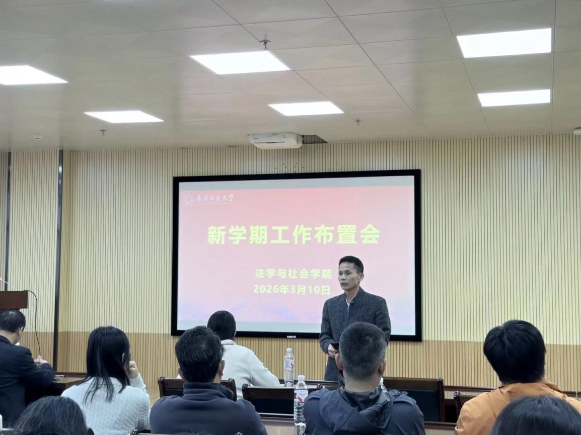随后,主持学院行政工作的副院长吴少进就贯彻落实学校“攀高峰、强特色”工作推进会要求,全面部署了新学期的学院教育教学工作。他强调,要充分了解国家和区域经济社会发展趋势和需求,把握法学、社会学、历史学的学科专业的基础优势和发展定位,找准三个学科专业内涵发展的着力点和落脚点,谋划传统学科专业转型发展和符合经济社会发展需要的研究方向,强化教师队伍的教育教学和社会服务能力提升,培育经济社会发展需要的适配人才。