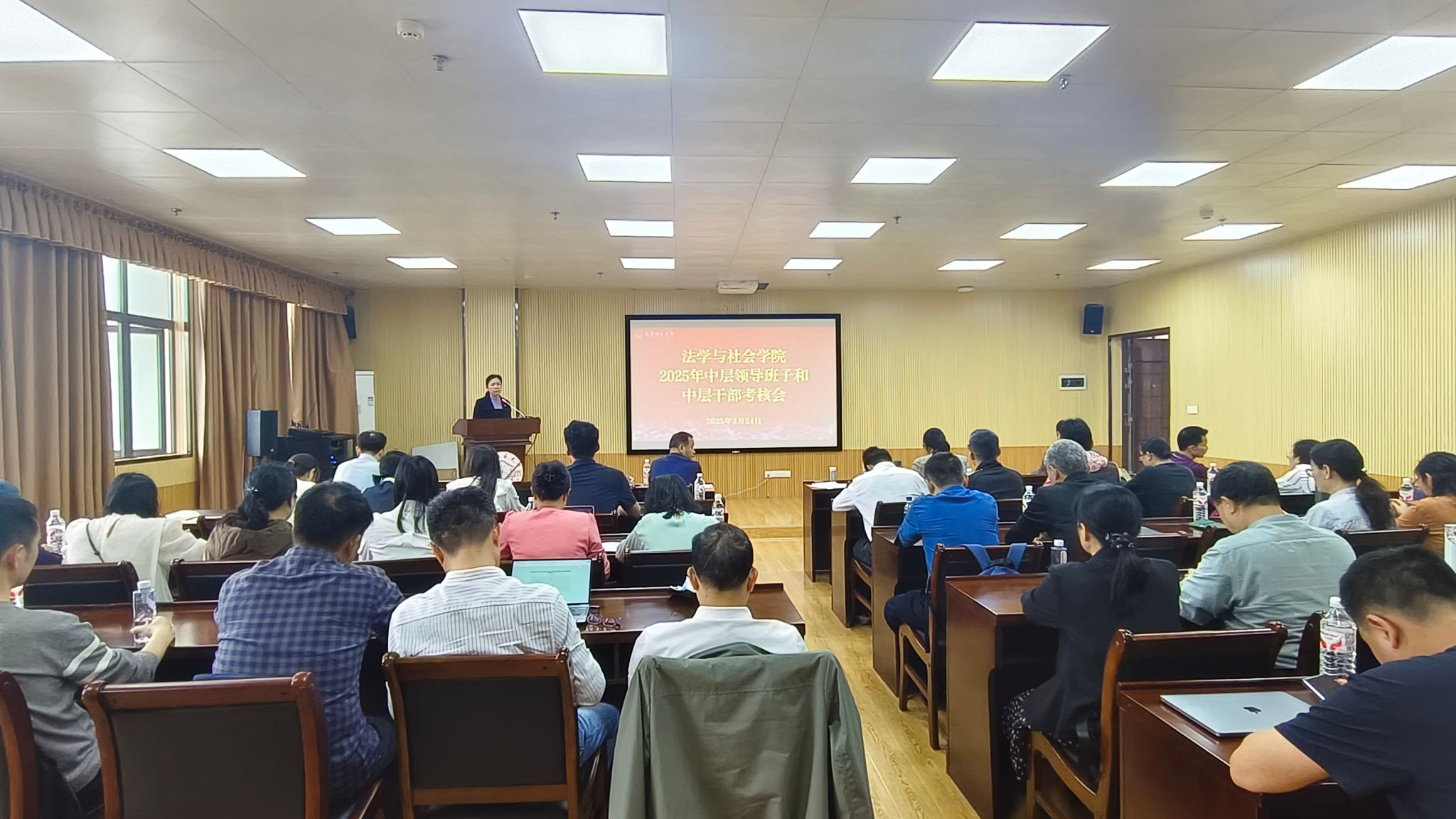 会议严格按照学校工作部署,依次开展多项议程。首先进行学院2025年度中层领导班子和中层干部考核工作,与会人员认真听取相关述职汇报,全面回顾班子及干部一年来履职尽责、担当作为情况,客观评价工作实绩与不足。随后,会议转入学院2025年教职工年度考核环节,进一步梳理全体教职工全年工作表现,与会人员依规进行现场投票,顺利完成民主测评相关流程。