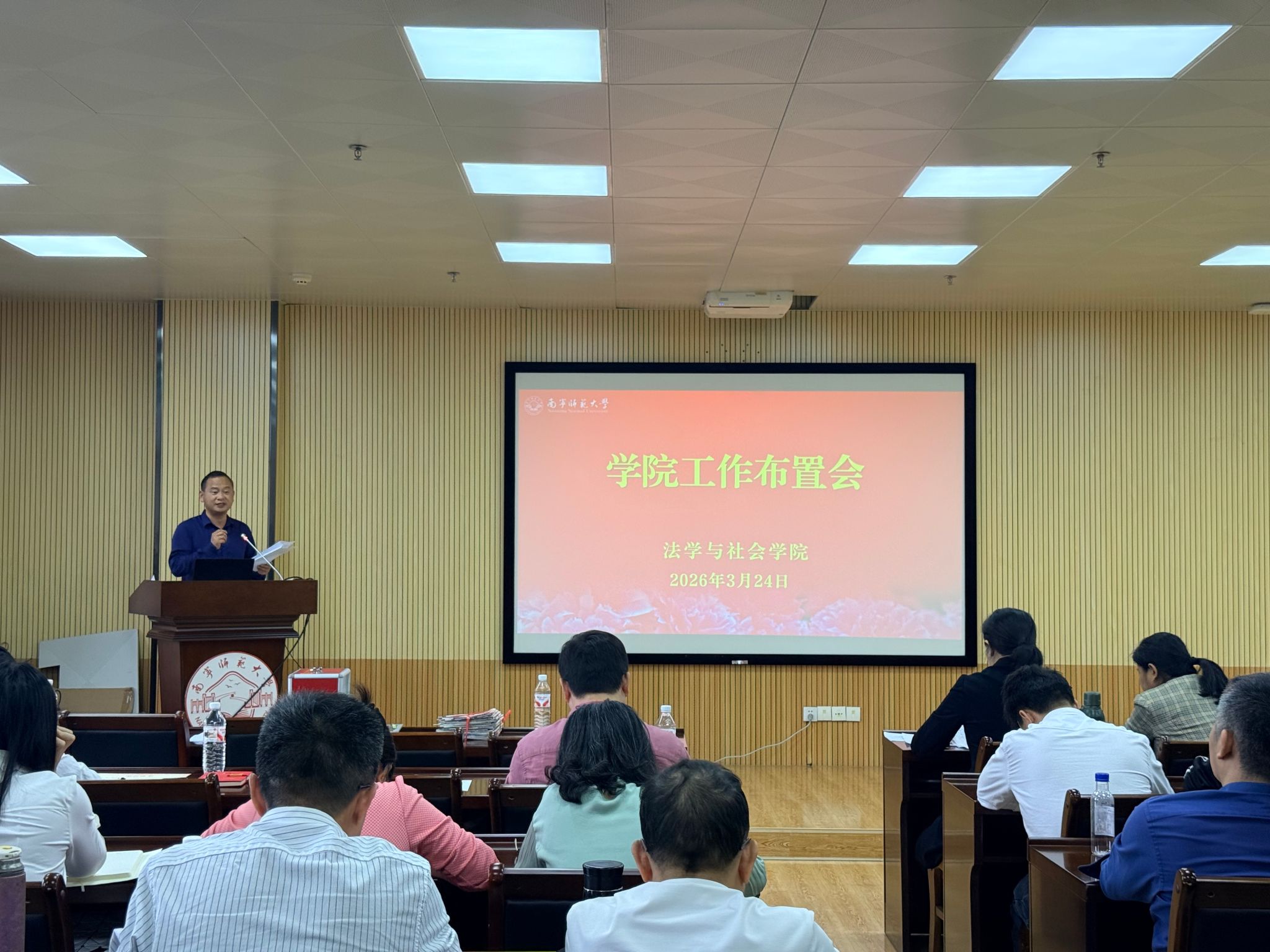 在五合校区理综720会议室召开2026年春季学期第二次全体教职工大会。会议由学院党委书记许建主持,学院领导班子成员、全体任课教师及行政教辅人员参会。