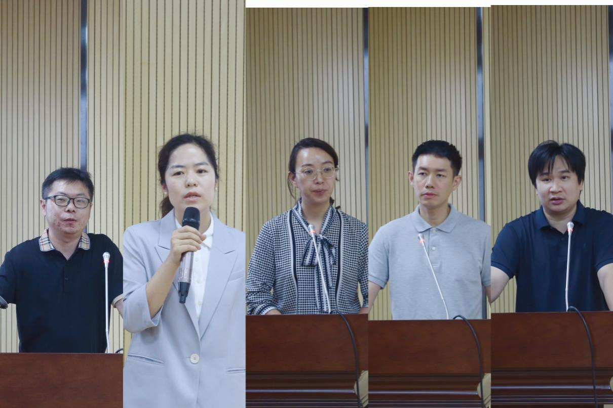历史系杨东东博士、社工系文丽博士、法律系张小华博士、文立彬博士、杨剑锋博士等5位青年教师依次登台竞技,围绕各自负责课程的整体思路、实践成效、教学成效与持续改进机制等核心板块展开说课,逻辑清晰、重点突出。在答辩环节,教师们针对评委提出的教学设计细节、教学难点应对、课程融合创新等问题,从容应答、精准回应,展现了深厚的专业素养与临场应变能力。