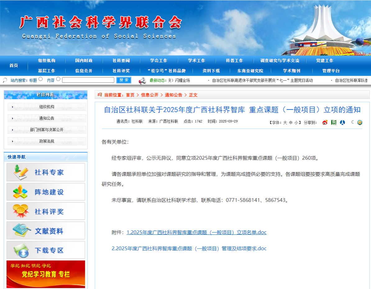 主播福利 教师获2025年度广西社科界智库重点课题立项