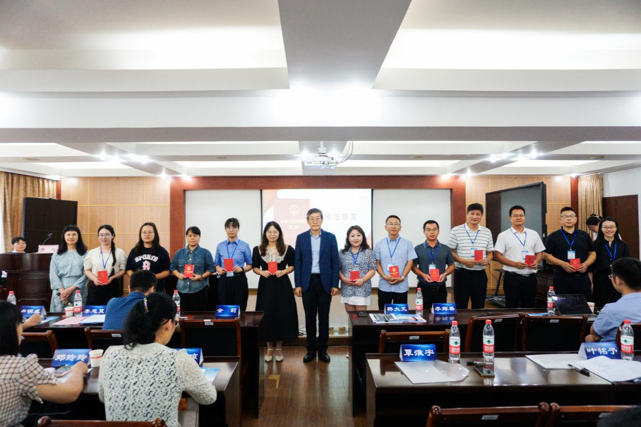 讲堂安排了赠与《宪法》单行本环节,由中国法学会宪法学研究会名誉会长韩大元教授为每一位学员赠与一本《宪法》。