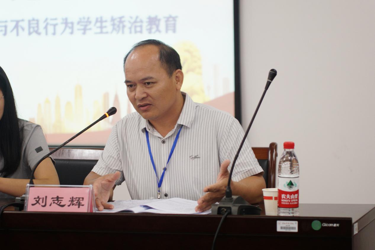玉林陆川县第十三中学副校长刘志辉分享了针对严重不良行为儿童如何实施有效的教学与矫治计划的经验。