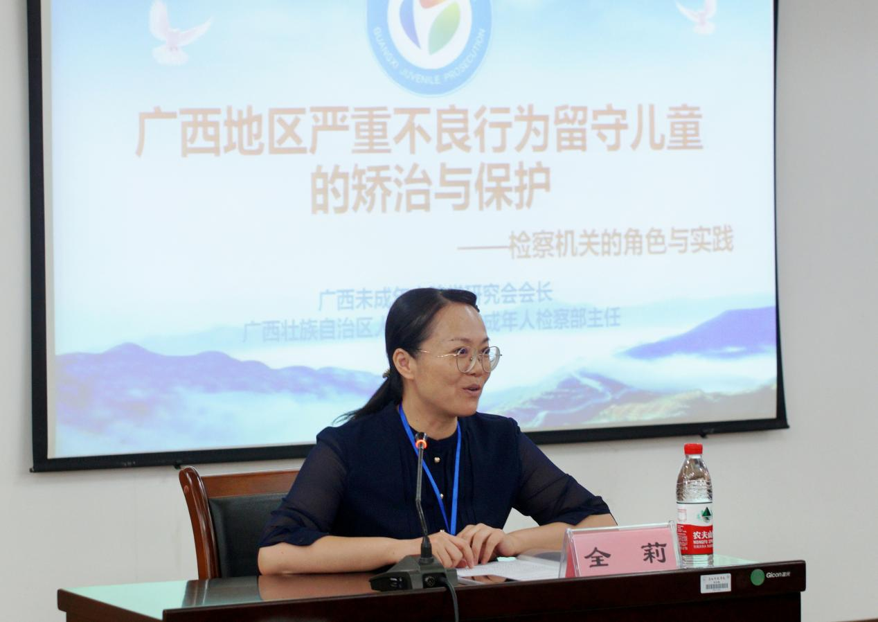 专题报告三:“广西地区严重不良行为留守儿童的矫治与保护:检察机关的角色与实践”,由广西壮族自治区人民检察院未成年人检察部全莉主任主讲。