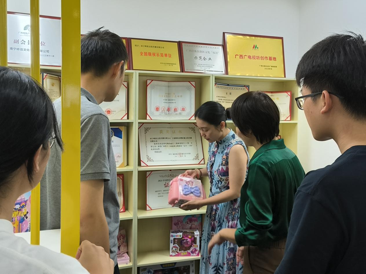 2024年4月26日是第24个世界知识产权日,4月20日至4月26日为全国知识产权宣传周,今年全国知识产权宣传周的主题是“知识产权转化运用促进高质量发展”。为提升学生对于知识产权法的理解,进一步推进产教融合和协同育人,2024年4月19日下午,主播福利 知识产权法教学团队卫绪华副教授、文立彬副教授和数名学生赴南宁峰值文化传播有限公司(下称“峰值公司)”开展以“知识产权转化运用促进高质量发展”为主题的调研交流活动。