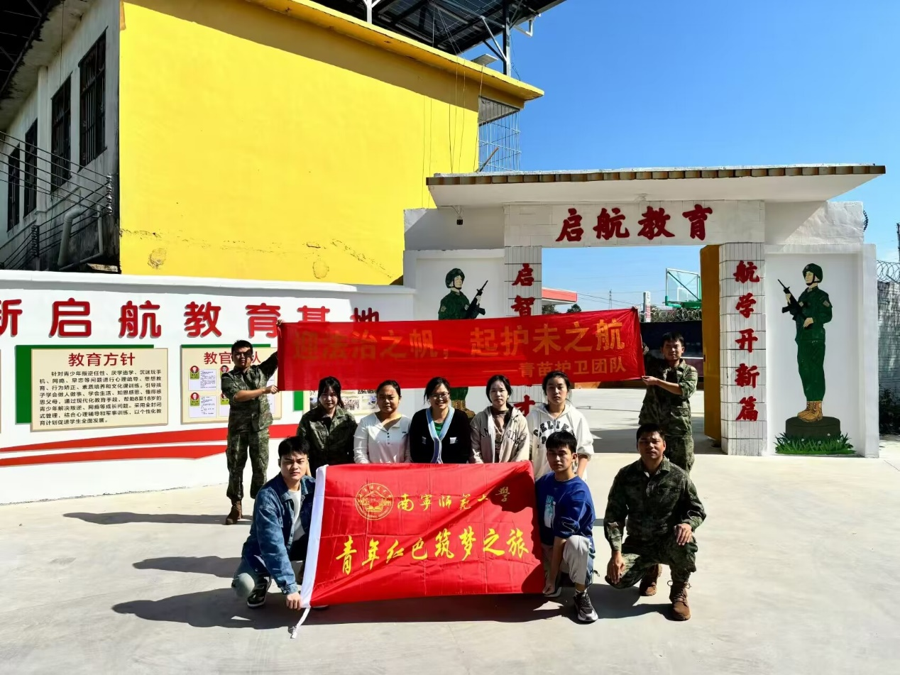 双创项项目——青苗护卫队在法学与社会学院和国家级《创新创业基础》一流社会实践课程建设支持下,由法学与社会学院教师陈西茜博士带队,5名本科生组成的团队,前往广西新启航教育基地、玉侨子午线、玉林市革命烈士纪念广场纪念碑以及玉林市退伍军人就业创业服务市场中心,开展了“青年红色筑梦之旅”社会实践活动。青苗护卫队调研重点聚焦在未成年人犯罪的改造与预防,以及未成年犯罪相关教官的来源,旨在为项目的持续发展提供背景调研和合作协商的基础。