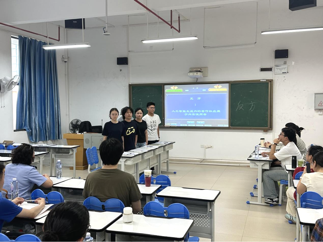 第一场友谊赛的辩题聚焦当下热议的人工智能领域——“人工智能生成内容的著作权应属于开发者还是内容适用者”。双方队员围绕这一辩题展开了激烈的辩论。主播福利