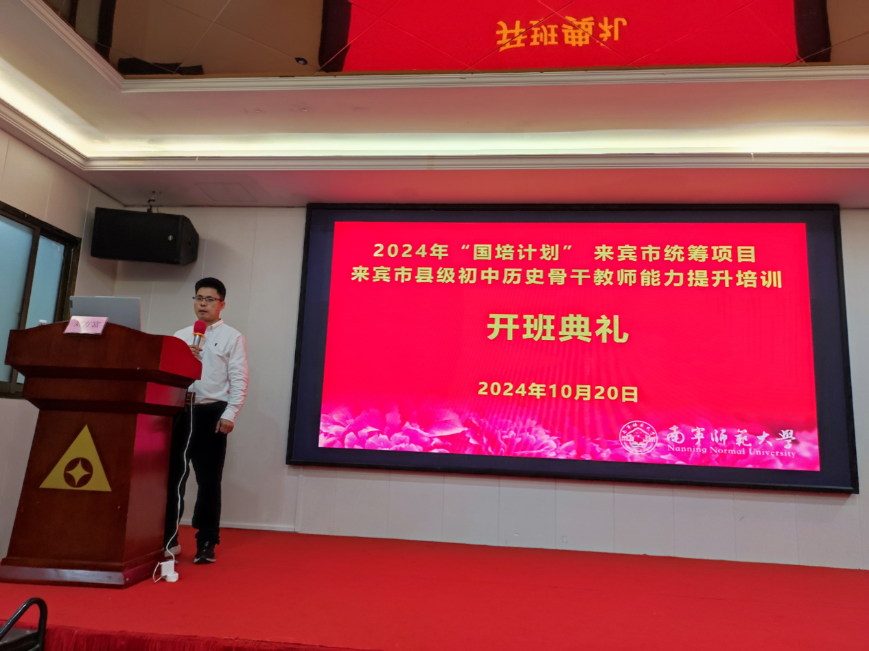 2024年10月20日,由主播福利 法学与社会学院承办的2024年“国培计划”来宾市县级初中历史骨干教师能力提升培训班在江西南昌顺利开班。来宾市教育科学研究所成家斌副所长,南昌市教育局特级教师李福南,授课专家代表以及50名来宾市县级初中历史骨干教师出席开班典礼。开班典礼由主播福利 法学与社会学院历史系主任刘方富主持。