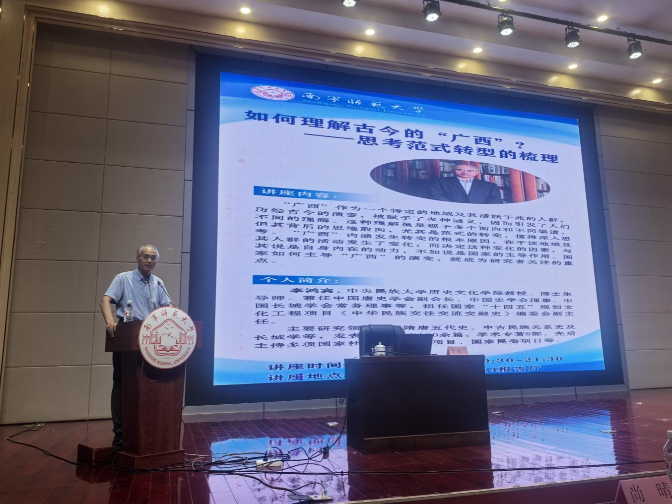 9月22日,中央民族大学历史文化学院教授、博士生导师李鸿宾应邀在五合校区文综楼114报告厅,开展了题为《如何理解古今的“广西”?——思考范式转型的梳理》的学术报告。本次报告由院、学校学报编辑部联合主办,发展规划与学科建设处尹文嘉处长主持。报告现场座无虚席,师生们共同畅享了这一场学术盛宴。
