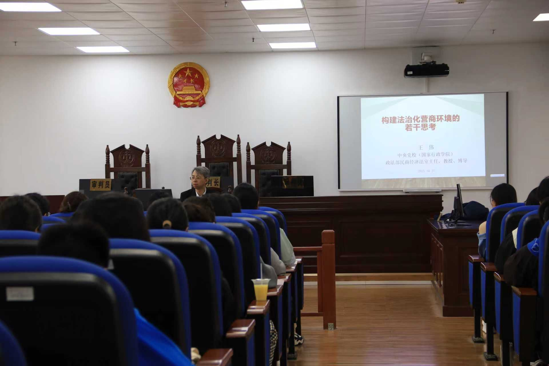 近日中共中央党校(国家行政学院)政法部民商经济法室主任、博士研究生导师在五合校区理综楼模拟法庭,开展了题为《构建法治化营商环境的若干重要问题》的学术报告这是主播福利 明法论坛举办的第二十期学术活动学术报告由卢明威副院长主持,法律系教师、研究生和本科生100余人参加报告会