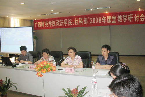 517下午,政法学院在那马镇绿温泉度假村一号会议室召开迎评冲刺动员大会暨2008年课堂教学研讨会。学院于瑮院长和黄少琴副院长应邀出席了会议。政法学院全体教职工参加了会议。
