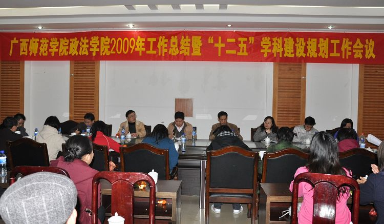 为进一步总结办学经验,促进学科建设和各项工作健康、稳定、快速发展, 1月9日,政法学院在乡村大世界多功能厅隆重召开2009年工作总结暨 “十二五” 学科建设规划研讨会。政法学院全体党政领导和教工出席了此次会议。会议由政法学院党总支李传珂书记主持。