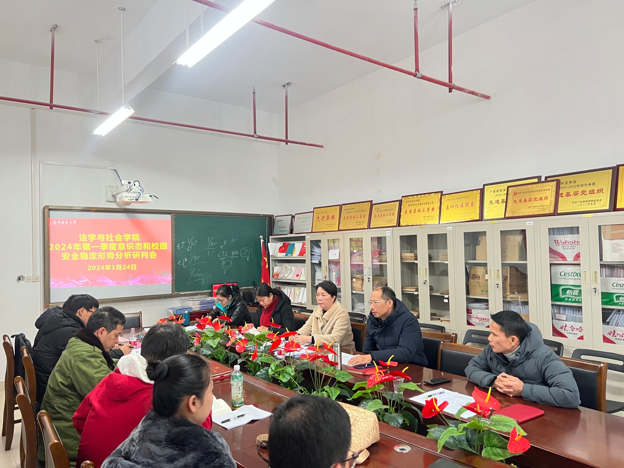 1月24日上午,我院在五合校区理综楼604-2会议室召开意识形态和校园安全稳定工作形势2023年度分析研判会暨2024年第一季度专题会议。学院党委委员,党支部书记,辅导员,各系主任、副主任参加会议。会议由学院党委书记许建主持。