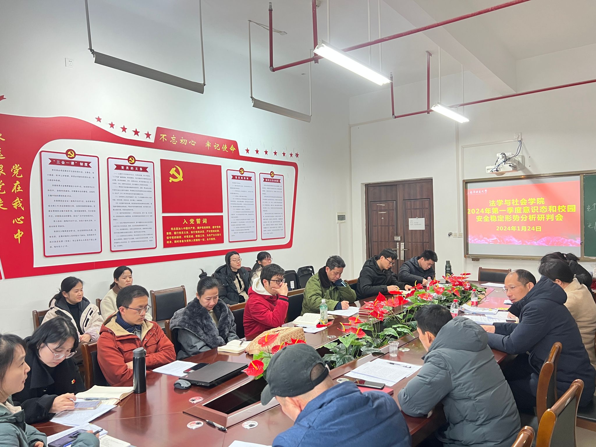 会上,许建书记首先回顾了2023年度学院在意识形态和安全稳定方面的工作情况。她指出,在学院共同努力下,师生的思想政治意识较强,政治氛围良好,维护了校园的和谐稳定。同时,她也强调了需要进一步加强学生思想政治教育,特别是在复杂社会问题面前帮助学生建立清晰的政治立场。许书记还对2024年第一季度的工作提出了具体部署,包括密切关注学生的心理健康,确保期末考核的公正性,以及寒假期间对学生的思想引导和行为规范管理。