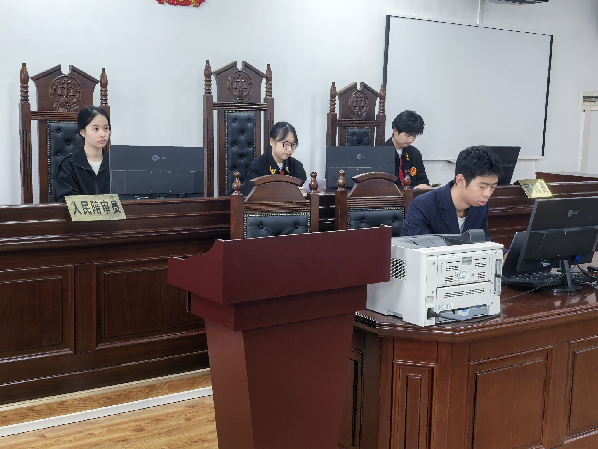 模拟庭审围绕一个电信诈骗案,学生分组模拟法官、公诉人、辩护人、被告人等角色,庭审严格遵循刑事诉讼程序,完整呈现法庭调查、举证质证、法庭辩论及被告人最后陈述等核心环节,以专业的角色代入和规范的流程操作,展现出同学们对法学理论知识的扎实掌握。