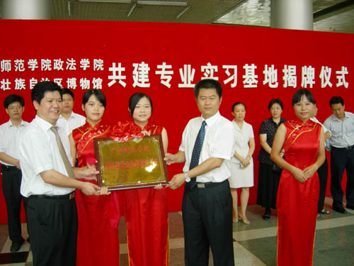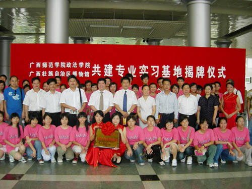 7 月3日 下午,广西师范学院政法学院历史专业教学实践基地揭牌仪式在广西壮族自治区博物馆隆重举行。出席本次仪式的有区博物馆馆长吴伟峰等,政法学院历史系全体教师和学生参加了仪式活动。