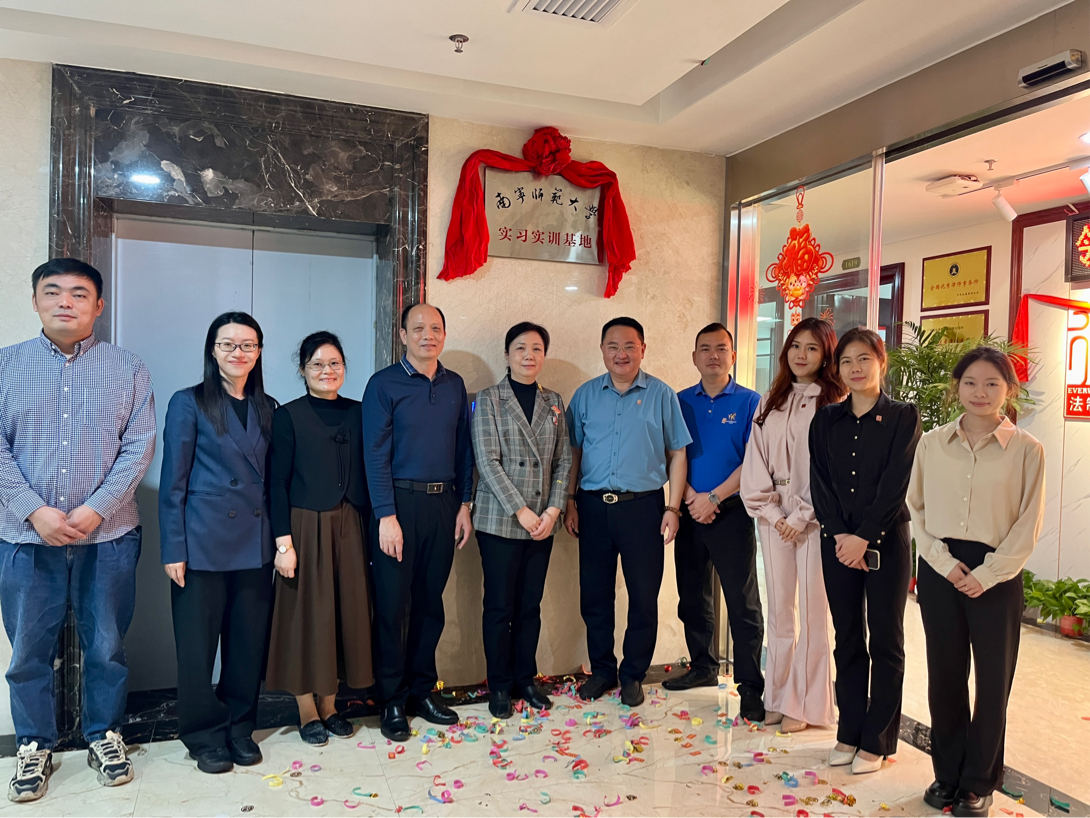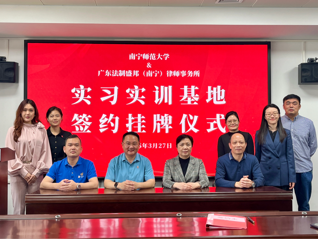 与广东法制盛邦(南宁)律师事务(以下简称“南宁分所”)共建实习实训基地签约挂牌仪式圆满举行。学院党委书记许建、副院长卢明威、院长助理兼法律系主任陈文琼、法律系副主任黎曦、南宁分所王小兵律师及执行主任梁瑞迎律师、副主任王心卓律师、杨晓梅律师、广西一起普法文化公司总经理徐鑫及学生代表共同参与了此次签约挂牌仪式。
