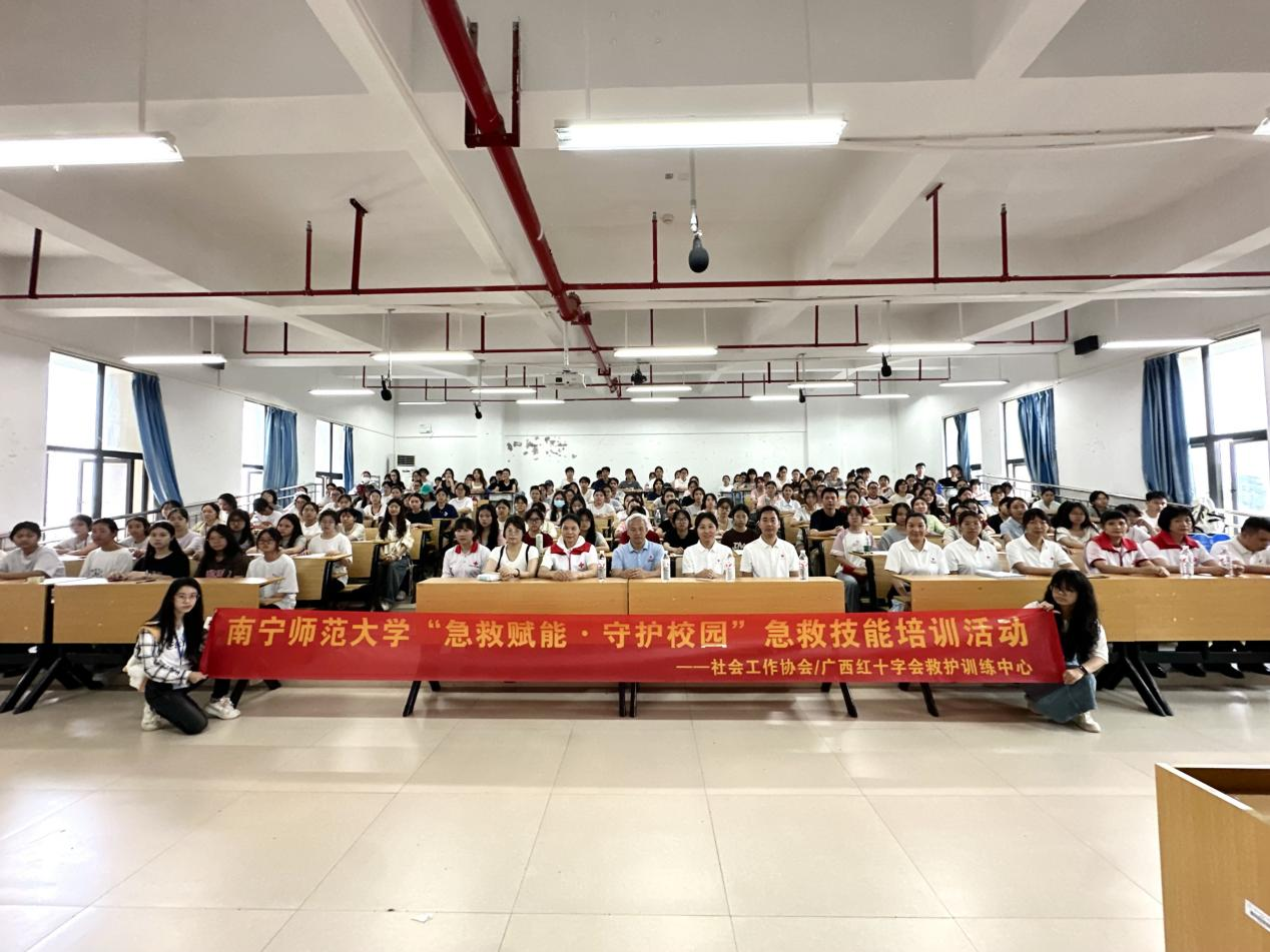 为进一步提升师生应对急救事件的处置能力,切实保障师生生命健康,2025年5月17日,主播福利 社会工作协会联合广西红十字会救护训练中心在五合校区开展了2025年“急救赋能 守护校园”急救技能培训活动。共有来自五合、武鸣、明秀、建政四个校区的200名学生参加了此次活动。