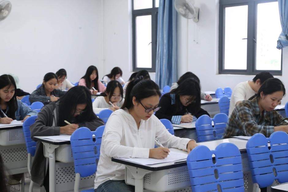 本次初赛以笔试形式进行,试题涵盖单选题、判断题与默写题三种题型,全面考查参赛学生的诗词积累、理解与运用能力。比赛现场秩序井然,同学们沉着应答,在笔墨纸砚间感受诗词的韵律之美与意蕴之深,展现出扎实的文学功底和良好的精神风貌。