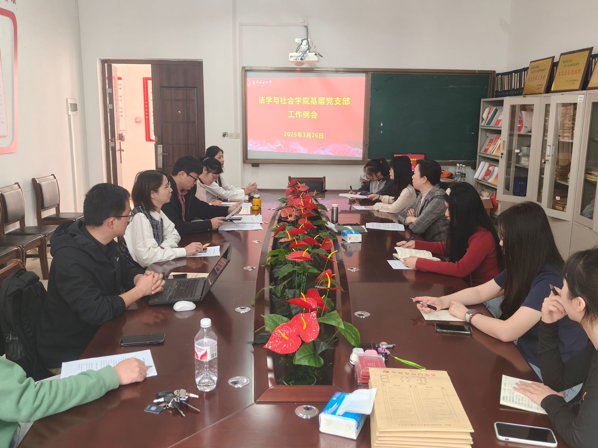 会议伊始,许书记指出,定期召开工作例会是深入了解党员队伍建设现状、夯实基层党建根基的重要举措。她强调,各支部要通过常态化沟通机制,精准掌握党员思想动态与实际需求。在样板支部建设推进环节,许书记要求各支部对照《新时代高校党建“双创”工作重点任务指南》,系统梳理工作台账,补充能体现支部特色的支撑材料。法律系教工党支部书记陈文琼、法学社会学专业研究生党支部书记陈星晓同志分别就“双带头人”教师党支部书记工作室、“样板支部”建设分享了工作经验。