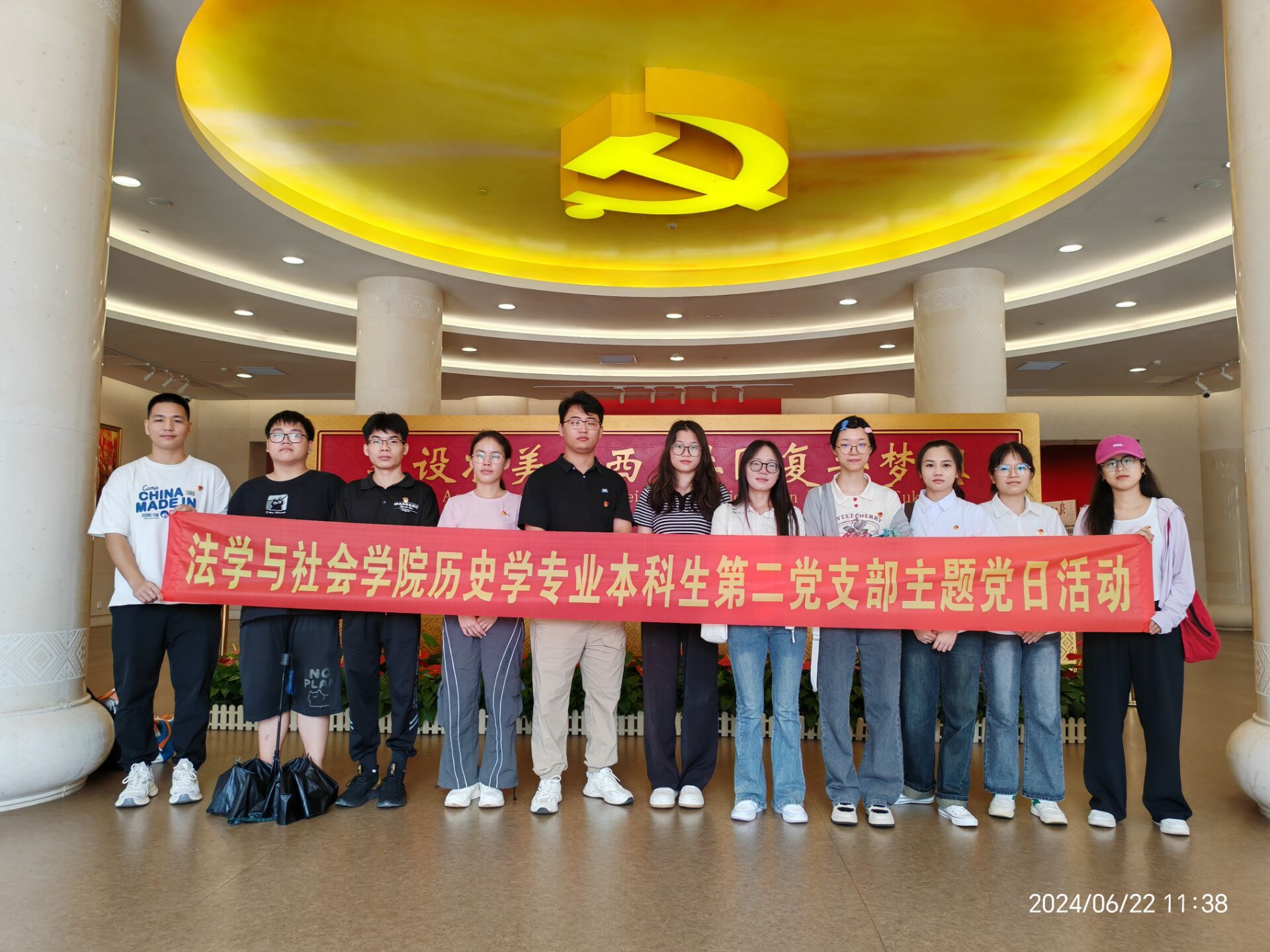 进一步增强党员的党性修养,提高党员的责任感、使命感,6月22日,我院历史学专业本科生第一党支部和第二党支部联合组织全体党员赴广西展览馆开展主题党日活动。党支部书记尹贻荣、马万里带队。