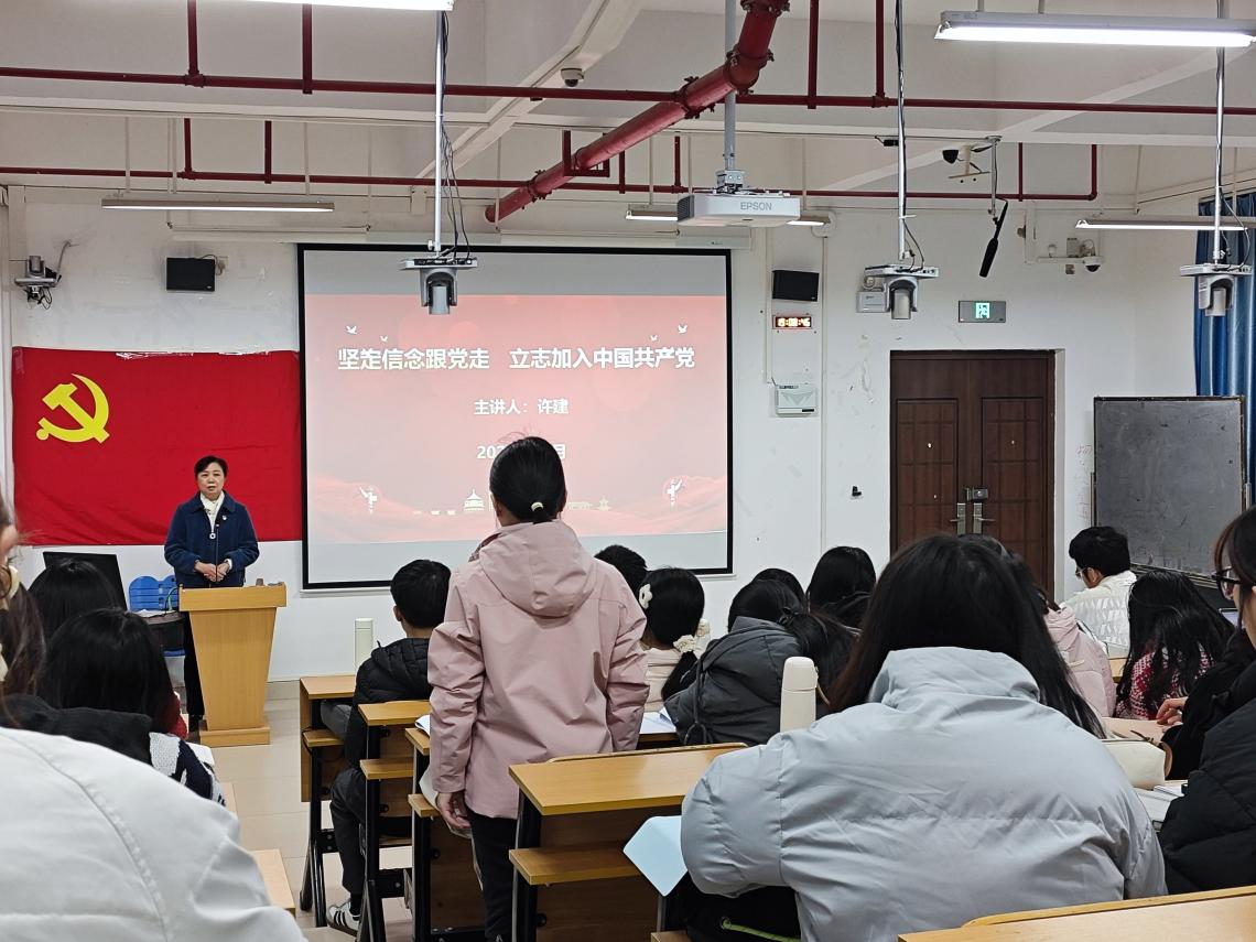 在第一讲课中,许建书记先由“为什么戴党员徽章”这个问题同各位同志进行讨论,并引出本次发展对象党校培训会的主题:“坚定信念跟党走,立志加入中国共产党”。紧接着许书记结合自身经历及长征时期的党史故事,围绕中国共产能够在短时间内强大起来的原因、新时代党坚强的领导核心作用、面临百年未有之大变局下党的主张与实践以及如何坚定的听党话、感党恩、跟党走等方面进行讲述