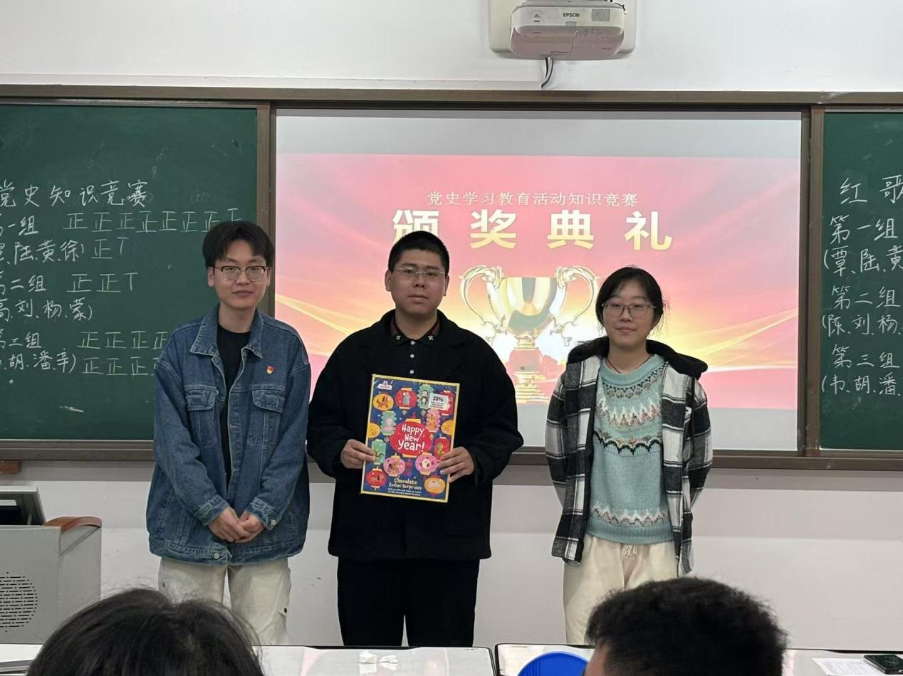 比赛现场气氛热烈,党史知识竞赛内容丰富,涵盖了党的重大历史事件、重要理论成果以及党章党规党纪等知识,分为必答题、抢答题等环节。在必答题环节,各参赛队伍按顺序依次挑选题目,单选题答对得1分,多选题答对得3分,答错或超时不扣分。抢答题环节,主持人宣读题目过程中即可抢答,答对加10分,答错或超时扣10分。比赛过程中,各参赛队伍展现了扎实的党史知识功底和默契的团队协作,现场气氛热烈而紧张。经过激烈角逐,由支部纪检委员韦运芳带领的队伍获得本次竞赛的第一名,由支部副书记覃驿翔带领的队伍获得本次竞赛的第二名,由支部组织委员高欣悦带领的队伍获得本次竞赛的第三名。支部宣传委员方志寅为获奖队伍颁奖,并对所有参赛选手的努力与成果给予了肯定。