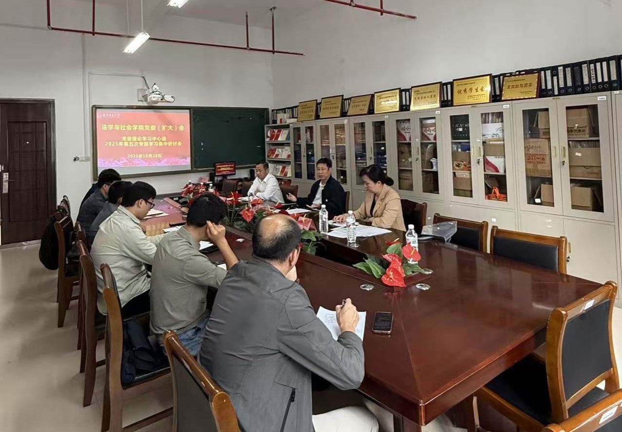 10月28日下午,学院党委理论学习中心组2025年第五次专题学习集中研讨会在五合校区理综楼604-2会议室举行。学校领导张松涛副校长到会巡听旁听并指导,学院党委理论学习中心组成员参加会议,副院长(主持院长工作)吴少进列席会议。会议由学院党委书记许建主持。